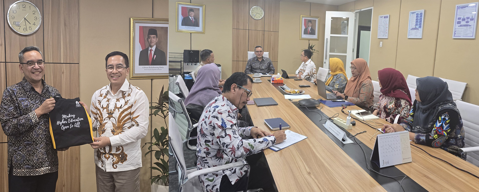 Dalam kaitan ini, tim dari UT yang dipimpin oleh Wakil Rektor Bidang Akademik (Warek I) melakukan audiensi dengan Direktur Kelembagaan, Ditjen Dikti – Kemendiktisaintek, Prof. Dr. Mukhamad Najib, S.TP., M.M. di Gedung D Kemendiktisaintek Jakarta pada hari Rabu, 3 Juli 2025. Hadir pula Dekan Fakultas Keguruan dan Ilmu Pendidikan (FKIP), Kepala Kantor Penjaminan Mutu (KPM), Sekretaris Asosiasi Penyelenggara Pendidikan Jarak Jauh Indonesia (APPJJI), Wakil Dekan FKIP, Staf Ahli Warek I, dan Manajer Penjaminan Mutu KPM.