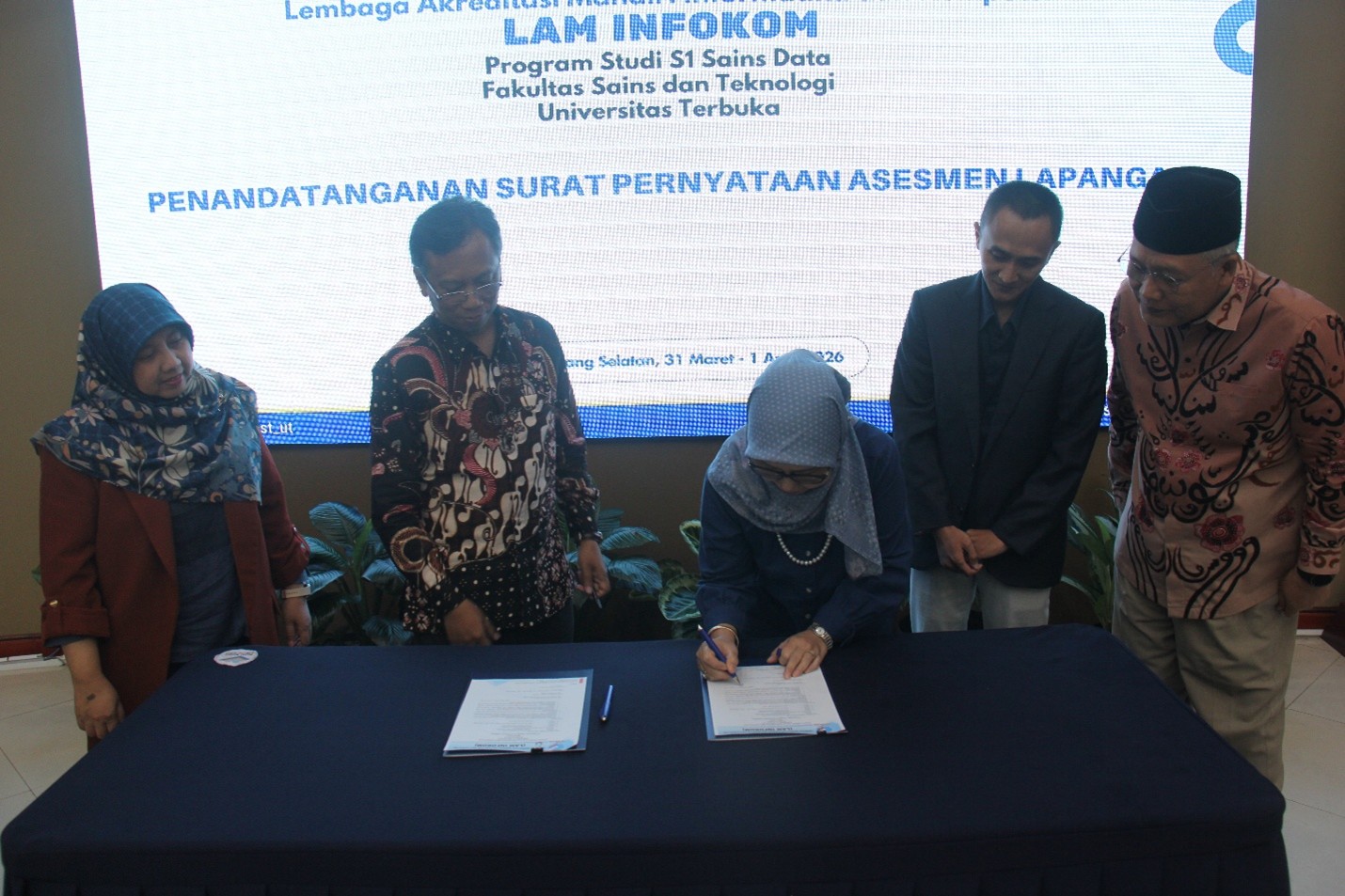 Tangerang Selatan – Program Studi (Prodi) Data Sains Universitas Terbuka (UT) menjalani proses Asesmen Lapangan (AL) sebagai bagian dari komitmen penjaminan kualitas pendidikan tinggi. Prodi Sains Data termasuk dalam cakupan LAMINFOKOM, Dalam kegiatan yang berlangsung pada 31 Maret 2026 tersebut, tim asesor LAMINFOKOM memberikan berbagai catatan strategis mulai dari apresiasi terhadap bahan ajar hingga penguatan sarana pendukung berbasis teknologi cloud. Tim Asesor yang bertugas adalah Prof. Dr. Ir. R. Rizal Isnanto, S.T, M.M., M.T., IPU, ASEAN Eng. dan Prof. Dr. Kusrini, M. Kom. Kegiatan ini berangsung di Auditorium Fakultas Sains dan Teknologi) dan dibuka oleh. Rektor Universitas Terbuka.